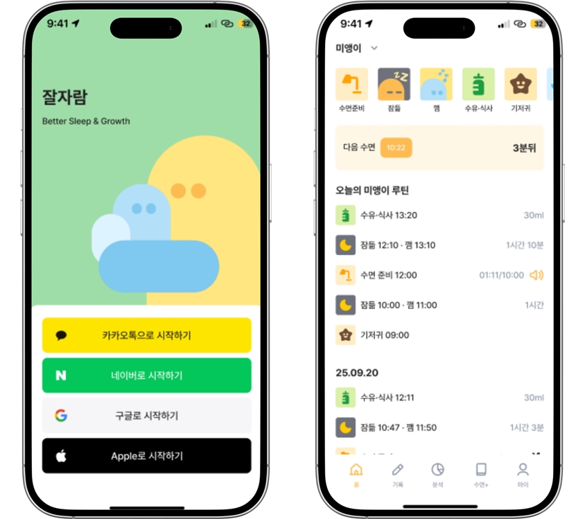 이 앱은 실시간으로 아기가 잠들기 좋은 타이밍을 알려주고 수면 루틴을 코칭하는 기능을 제공한다.