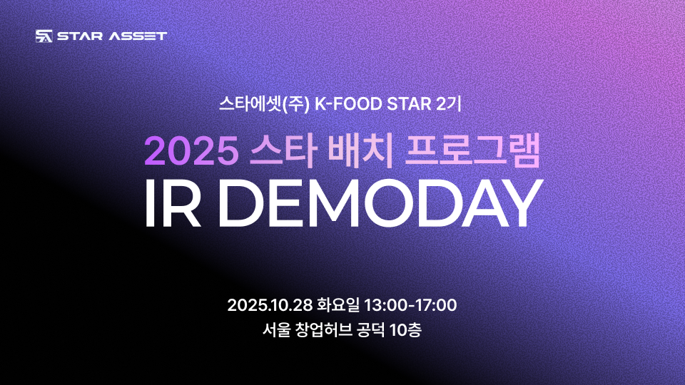 행사는 스타에셋의 투자 심사 및 사업개발 전문가, 외식산업 주요 인사들이 참석한 가운데 진행될 예정이며, 현장에서는 K-FOOD STAR 2기 선발팀의 IR 피칭과 네트워킹 세션이 함께 열린다.