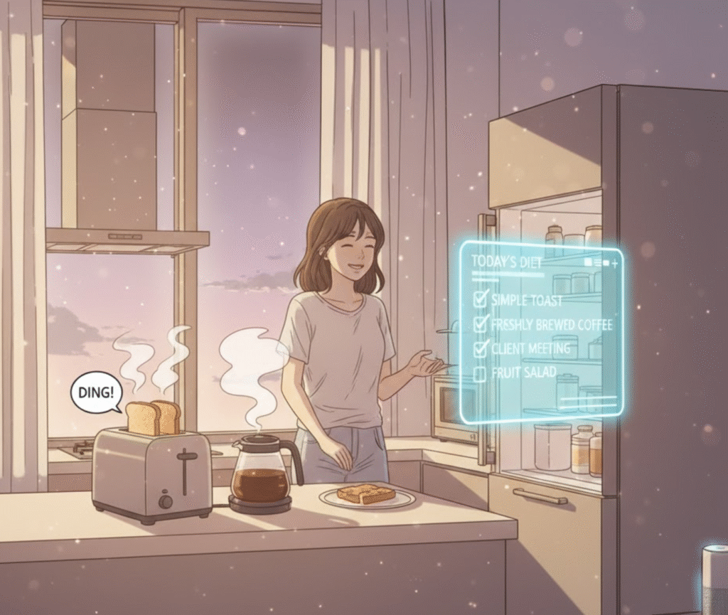 주말 아침, 늦잠을 자고 일어났더니 AI가 말한다. “수면 패턴이 평일과 3시간 차이 납니다. 월요일 컨디션을 위해 지금 기상하는 것이 최적입니다.” 오후에 오랜만에 책을 읽으려는데 AI가 제안한다. “최근 2주간 독서 시간이 0분입니다. 하지만 이 책의 평점은 3.2점입니다. 대신 평점 4.5점의 베스트셀러를 추천합니다.” 저녁에 친구들과 술약속이 잡혔는데 AI가 알린다. “내일 오전 9시 중요 프레젠테이션이 있습니다. 약속을 다음 주로 변경하시겠습니까? 친구에게 자동으로 양해 메시지를 보내드릴까요?”