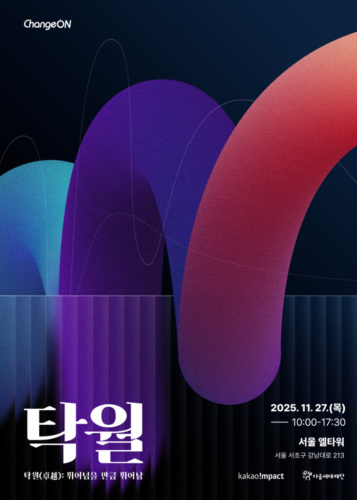 다음세대재단과 카카오임팩트가 주최·주관하는 ‘2025 비영리 컨퍼런스 체인지온(ChangeON)’이 오는 11월 27일 열린다.