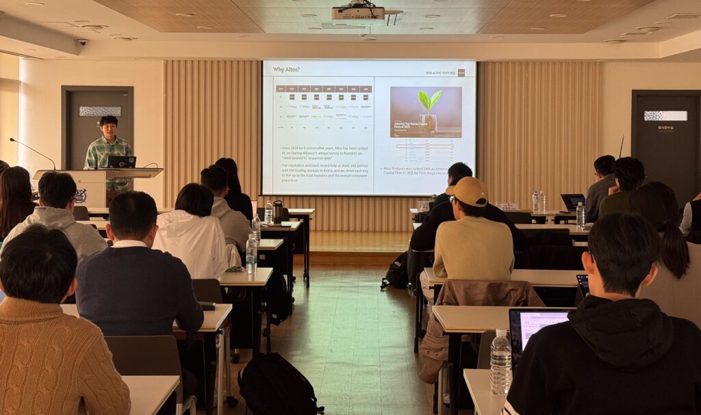 안상일 알토스벤처스 파트너는 하이퍼커넥트 창업과 성장 사례를 중심으로 알토스의 투자 관점을 소개했다. 신정환 파트너와 정해민 심사역은 AI 기술을 포함한 주요 투자 분야와 한국 시장의 창업 트렌드를 공유했다.