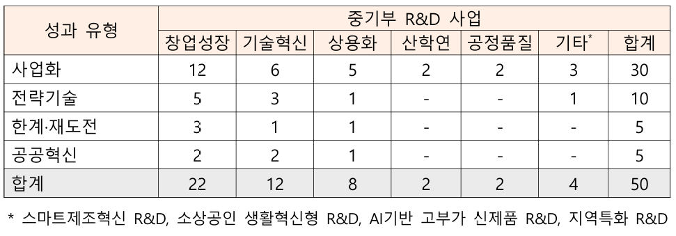 선정된 기업은 사업화 성과가 우수한 기업 30곳, 전략기술 분야에서 글로벌 수준의 기술력을 확보한 기업 10곳, 경영 위기를 극복하고 재도전에 성공한 기업 5곳, 사회 불평등 완화 등 공공서비스 개선에 기여한 기업 5곳 등 총 50곳이다.