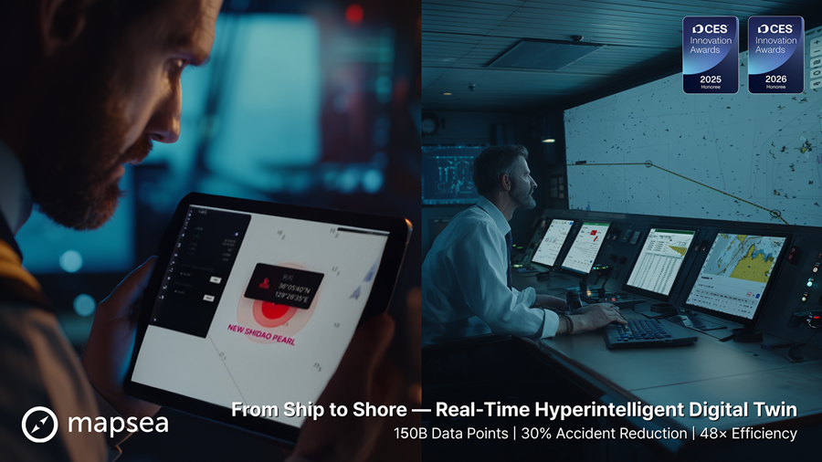 해양 빅데이터 솔루션 기업 맵시(Mapsea)가 미국 라스베이거스에서 열린 CES 2026에서 Enterprise Tech 부문 혁신상(2026 CES Innovation Award)을 수상하며, 지난해에 이어 2년 연속 CES 혁신상 수상 기업으로 선정되었다. 이번 수상은 맵시의 글로벌 해양 빅데이터와 AI 기반 디지털 트윈 항해 기술이 해양 산업의 안전, 환경, 운영 효율을 동시에 혁신한 B2B 솔루션으로 인정받은 결과다.