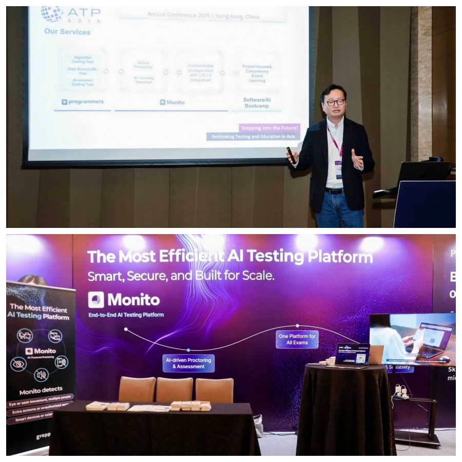 AI 기반 온라인 평가 플랫폼 그렙이 지난 2일부터 4일까지 홍콩에서 열린 ‘2025 Asia-ATP 컨퍼런스’에 골드 스폰서로 참여해 AI 시험감독 솔루션 ‘모니토’를 중심으로 그렙의 AI 평가 기술을 소개했다.