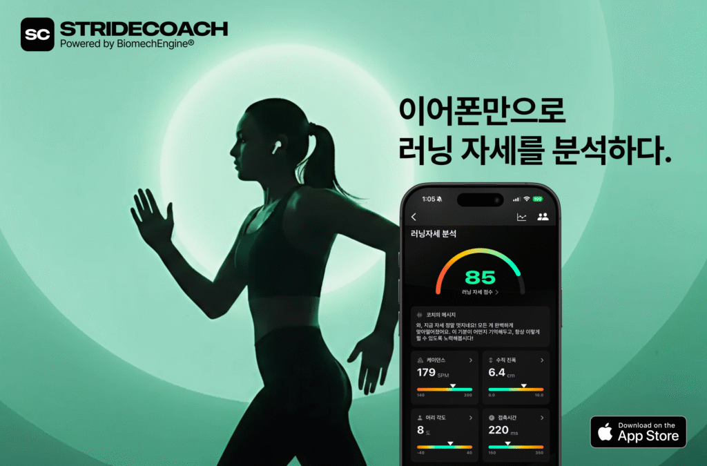 비플렉스 관계자는 “스트라이드코치는 에어팟만으로 전문가 수준의 러닝 폼 분석을 제공하는 것이 특징”이라며 “초보자부터 전문가까지 맞춤형 코칭을 합리적인 가격에 경험할 수 있도록 설계했다”고 말했다.