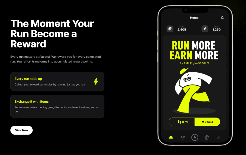 ‘Paceful’은 러너의 운동 데이터를 기반으로 커뮤니티를 추천하고 러닝 활동에 따라 보상을 제공하는 리워드형 러닝앱이다. 기록 측정 외에 러너 간의 연결과 참여를 유도하는 커뮤니티 중심 서비스다.