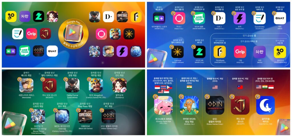 ‘올해를 빛낸 멀티 디바이스 게임’으로 선정된 저니 오브 모나크는 리니지 IP를 재해석해 PC, 태블릿, 모바일 간 일관된 경험을 제공했다. ‘올해를 빛낸 경쟁 게임’ Delta Force도 PC-모바일 크로스 플레이를 지원하는 대규모 전투로 호평받았다. ‘올해를 빛낸 PC 게임’ 오딘: 발할라 라이징도 Google Play Games on PC 플랫폼에서 강력한 성과를 냈다.