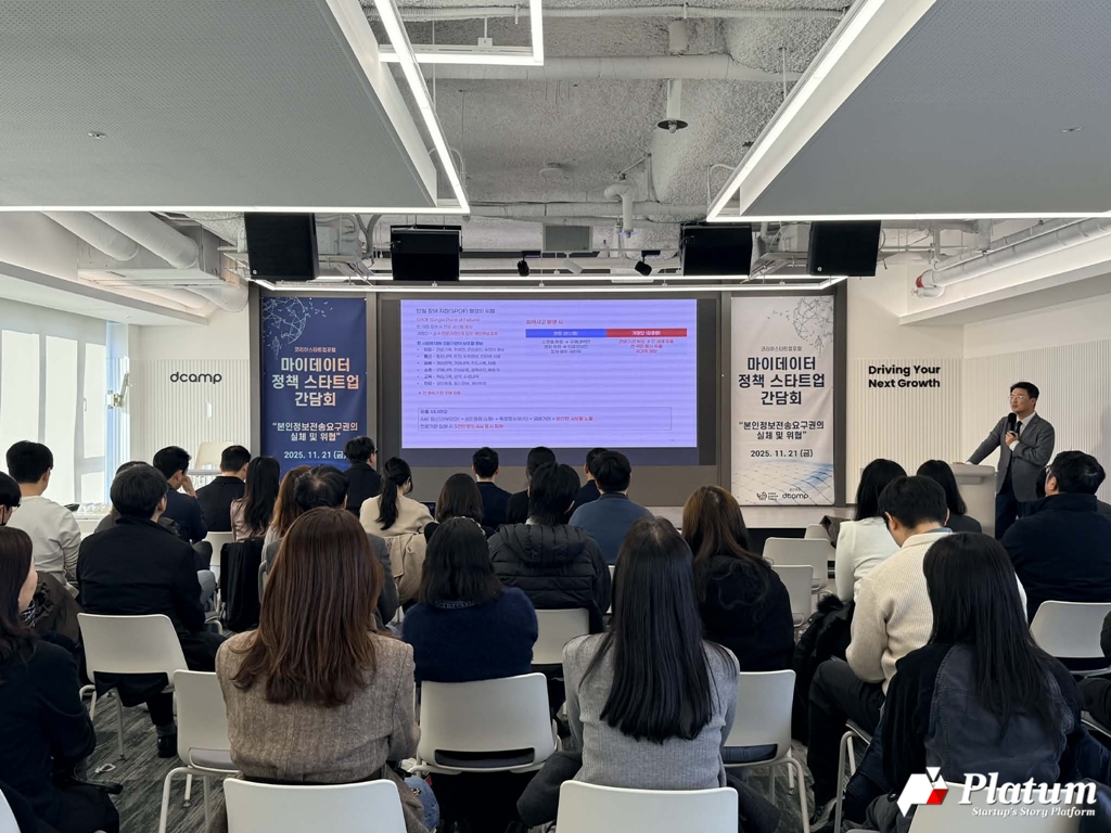 코리아스타트업포럼이 21일 오후 디캠프 선릉점에서 ‘마이데이터 정책 스타트업 간담회’를 열고, 개인정보보호위원회(개보위)가 추진 중인 본인정보전송요구권 확대 시행령에 대한 우려를 쏟아냈다.
