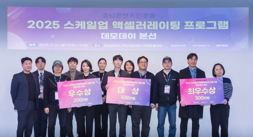전화성 씨엔티테크 대표는 “충남 지역 콘텐츠 기업들이 경쟁력을 강화하고 스케일업 기회를 확보할 수 있도록 지원할 것”이라며 “데모데이에서 확인된 성장 가능성을 바탕으로 투자 및 후속 연계를 검토하겠다”고 전했다.