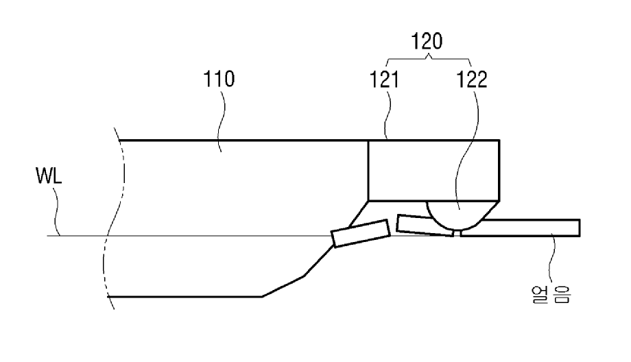 “부빙을 가이드할 수 있는 아이스 선박(출원번호 10-2021-0131389)” 발명은 선측 외부에 부빙 가이드 날개를 펼쳐 깨진 얼음이 선체에 바짝 붙지 않고 항로 바깥으로 흘러나가도록 유도하는 구조를 제시한다. 즉, 항로 위 얼음과의 싸움이 단순히 파쇄가 아니라, 항로 폭을 관리하는 문제라는 인식이 고스란히 드러나는 기술이다.