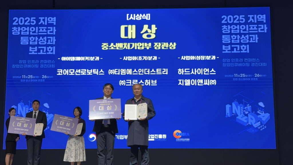 글로벌 신원인증 기업 크로스허브가 지난 11월 25일 중소벤처기업부와 창업진흥원이 주관한 ‘2025년 창업 인프라 통합 성과보고회’에서 중소벤처기업부 장관상을 수상했다.