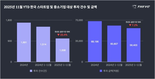 다만 연간 기준으로 볼 때 초기 투자 비중은 건수와 금액 모두 지난해 대비 약 10%포인트 감소한 상태다. 더브이씨 측은 11월의 초기 투자 반등이 일시적 현상일 가능성이 있다고 분석했다.