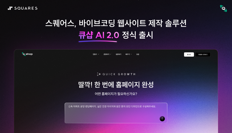 스퀘어스가 인공지능(AI) 기반 웹사이트 제작 솔루션 ‘큐샵 AI 2.0’을 정식 출시했다.
