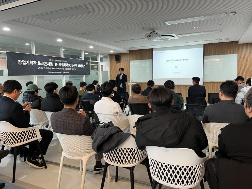 행사에서는 엠와이소셜컴퍼니 해민영 이사가 ‘벤처스튜디오 모델’을, 와이앤아처 이호재 공동대표가 ‘밸류 크리에이션 하우스(Value Creation House)’를 주제로 발표했다. 이어 협회 측이 ‘액셀러레이터 성장 패러독스’에 대해 발제하며 사업화 모델 발전과 투자·보육 전략에 대한 의견을 공유했다.