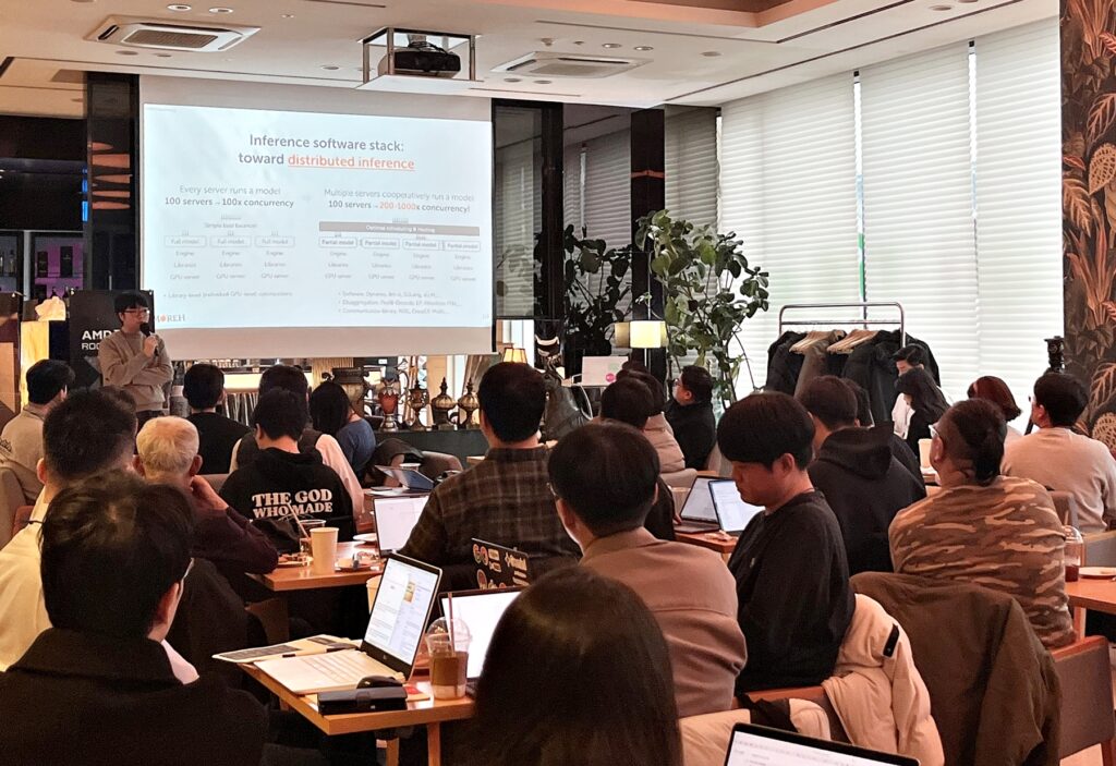 지난 10일 서울 강남 알로프트 호텔에서 열린 이번 행사에는 국내외 AI 개발자, 오픈소스 커뮤니티 및 업계 관계자 약 100여 명이 참석했다. 밋업에서는 AMD GPU 생태계 내에서의 오픈소스 거대언어모델(LLM), 비전 모델, 추론 프레임워크 가속화 기술 현황이 공유됐다.