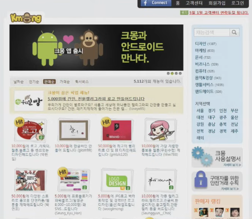 5달러에 재능을 거래하는 플랫폼. 트래픽이 폭발적으로 성장하고 있었다. 이해가 안 됐다. 7천 원 받고 일을 한다고? 그래서 지켜만 봤다.