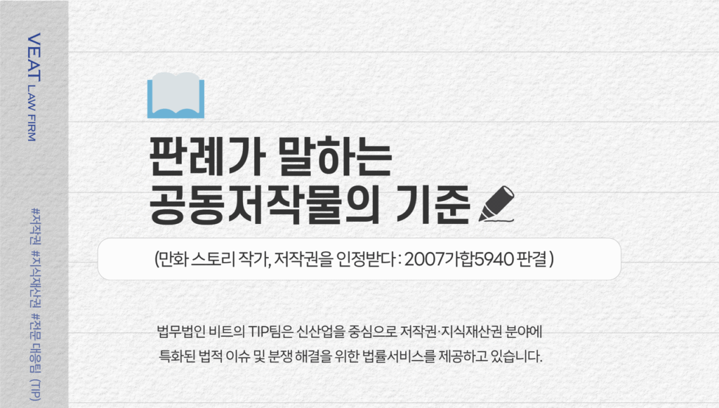 그렇다면 실제 법원은 이러한 기준을 구체적으로 어떻게 적용하고 있을까요? 이번 칼럼에서는 만화 저작물을 둘러싼 분쟁에서 법원이 공동저작물과 2차적저작물을 어떻게 구별했는지 그 판단 기준을 자세히 들여다보겠습니다.