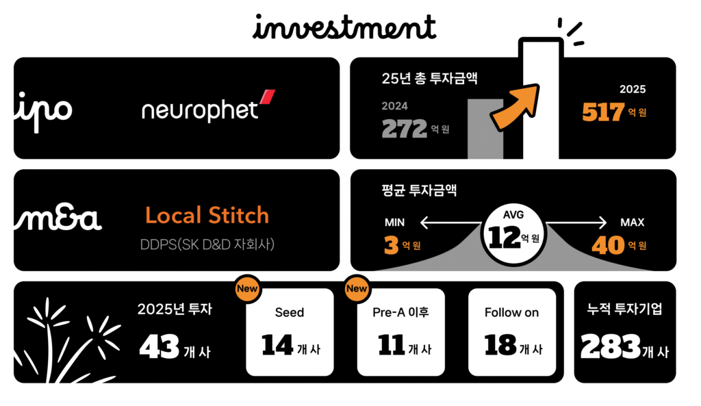 회수 성과도 이어졌다. 뉴로핏이 코스닥에 상장했고, 로컬스티치는 SK D&D 자회사 DDPS에 인수됐다.