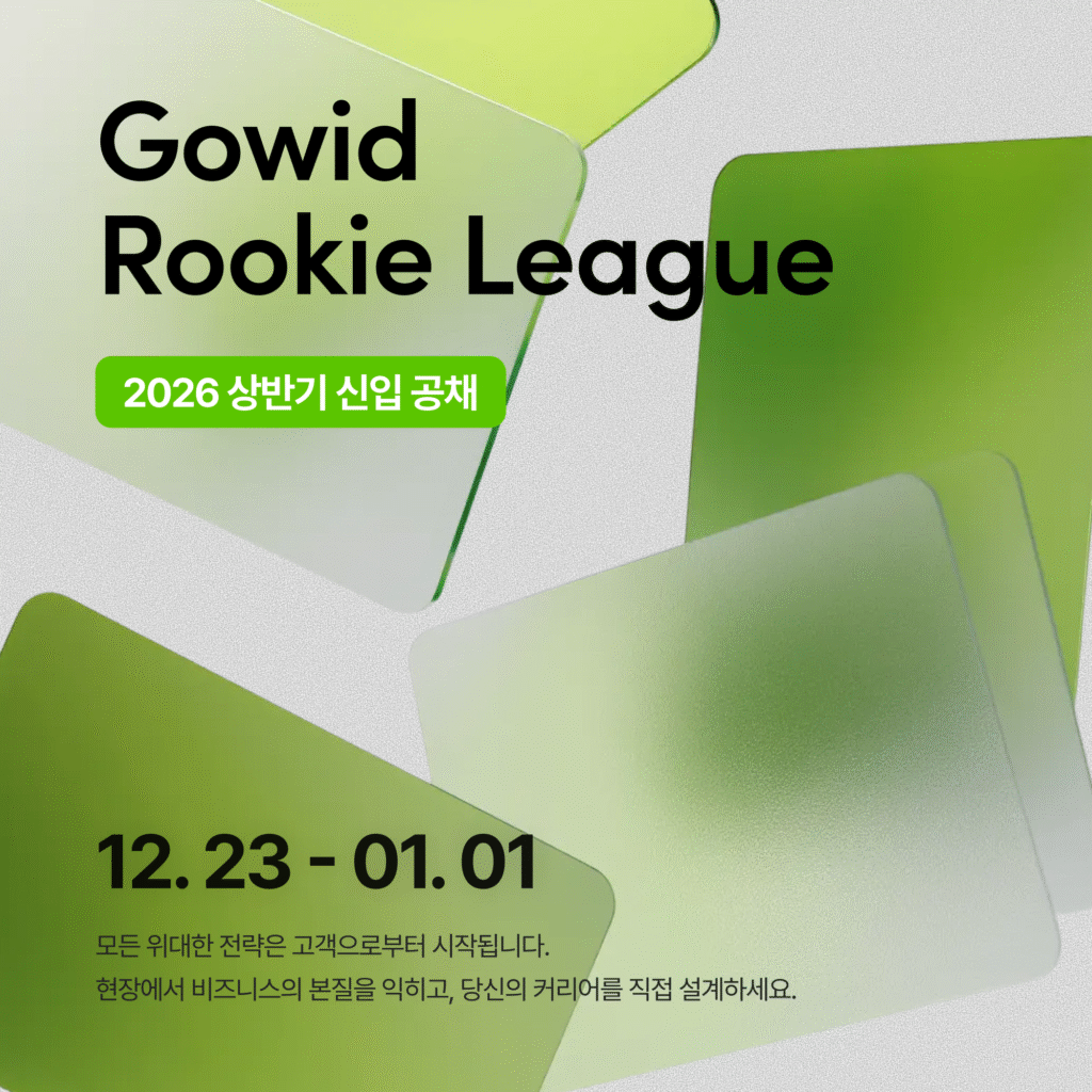 B2B 금융 솔루션 기업 고위드가 고객 문제 해결 역량을 핵심 기준으로 삼는 신입 공개 채용 프로그램 ‘고위드 루키 리그(Gowid Rookie League)’를 론칭한다.