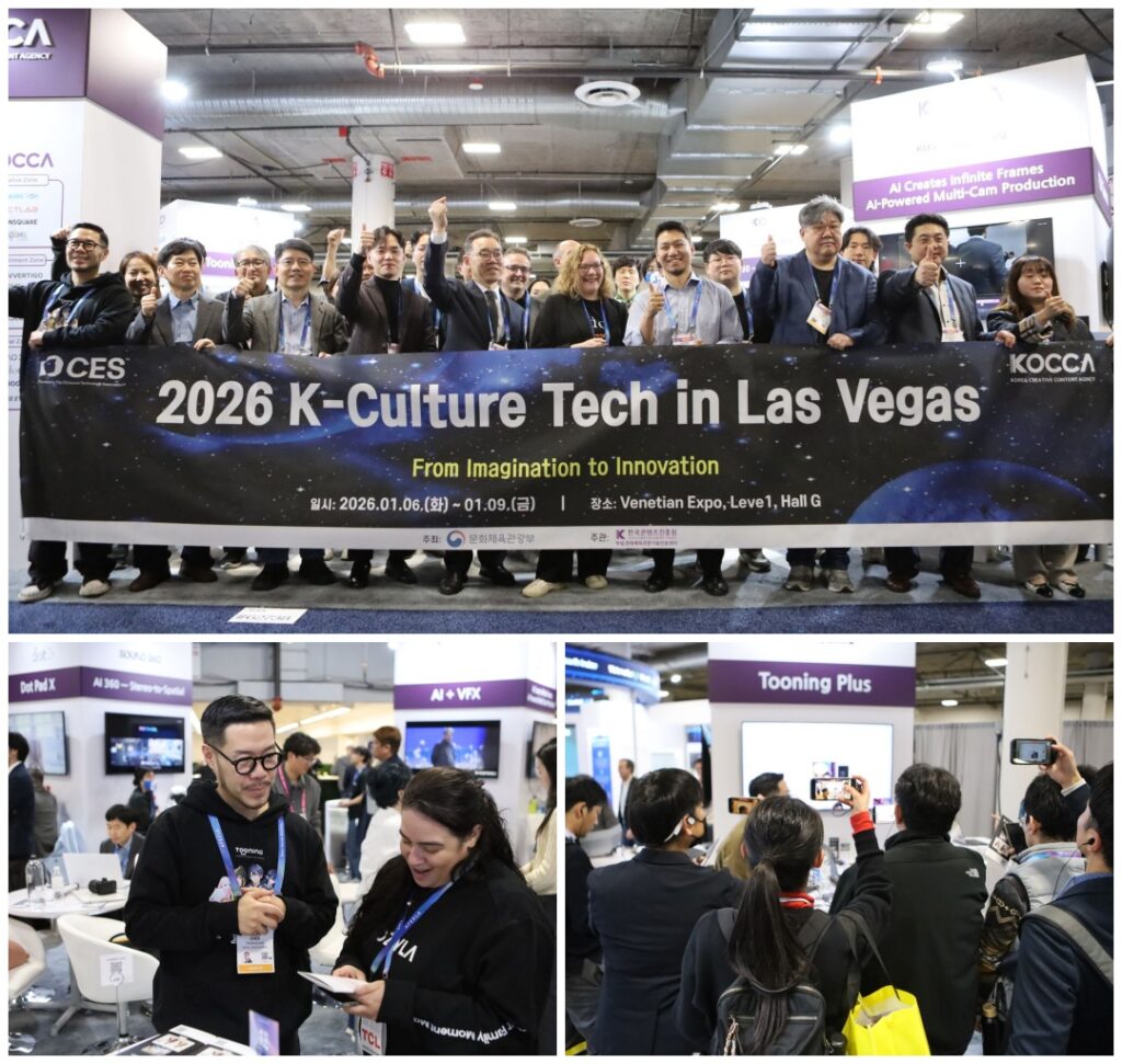문화체육관광부와 한국콘텐츠진흥원은 1월 6일부터 9일까지 미국 라스베이거스에서 열린 CES 2026에서 코카(KOCCA) 공동관을 운영해 2,584명의 방문객을 유치하고 813건의 기술 시연 및 비즈니스 상담을 진행했다고 21일 밝혔다.
