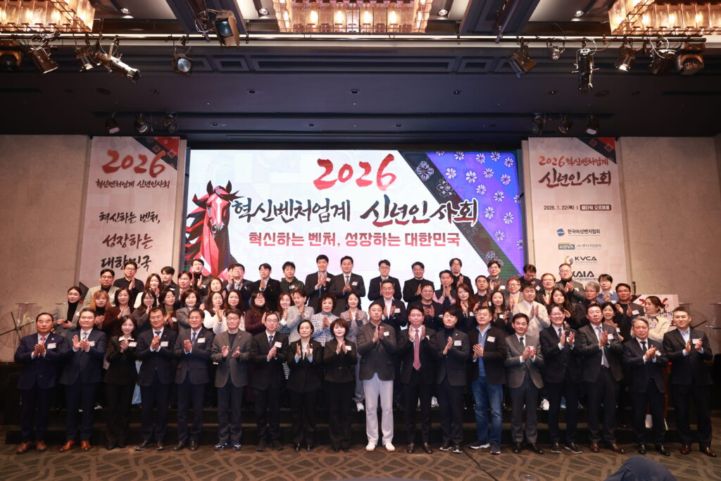 한국여성벤처협회, 벤처기업협회, 한국벤처캐피탈협회, 초기투자액셀러레이터협회, 코리아스타트업포럼 등 5개 단체는 22일 서울 엘타워에서 ‘2026 혁신벤처업계 신년인사회’를 공동 개최하고 이 같은 과제에 대한 해법을 제시했다. 중소벤처기업부 한성숙 장관과 벤처기업인 200여 명이 참석했다.
