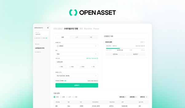 오픈에셋은 스테이블코인 발행 플랫폼 ‘오픈민트(OpenMint)’를 고도화하고 있다. 정책 기반 발행·유통 통제, 역할 기반 권한 관리, 감사 로그 및 증적 체계, 모니터링·리포팅 기능 등을 구현하고 있다.