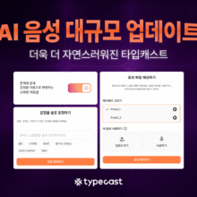 AI 음성 생성 스타트업 네오사피엔스가 자사 생성형 AI 콘텐츠 제작 서비스 ‘타입캐스트’의 대규모 업데이트를 발표했다. 이번 업데이트에서는 기존 대비 10배 늘어난 학습 데이터를 활용해 더 ...