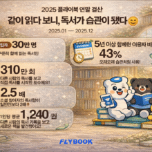 소셜 리딩 플랫폼 플라이북이 2025년 연말결산을 공개했다. 누적 가입자는 30만 명을 넘어섰다. 이번 결산에서 주목받은 수치는 이용 기간이다. 전체 가입자 중 43%가 5년 이상 서비스를 ...