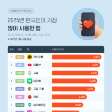 앱·결제 데이터 분석 서비스 와이즈앱이 2025년 1월부터 11월까지 한국인의 스마트폰 앱 사용 패턴을 분석한 결과를 발표했다. 이번 조사는 안드로이드와 iOS 사용자를 대상으로 실시됐다. 월평균 사용자 ...
