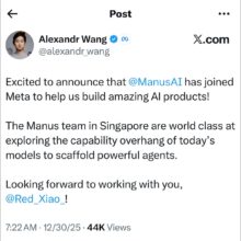 출시 9개월 만에 ARR 1억2500만 달러 돌파한 마누스, 메타 품으로 메타(Meta)가 싱가포르 소재 AI 에이전트 스타트업 마누스(Manus)를 인수한다고 29일(현지시간) 발표했다. 인수 금액은 공개되지 않았다. 마누스는 ...